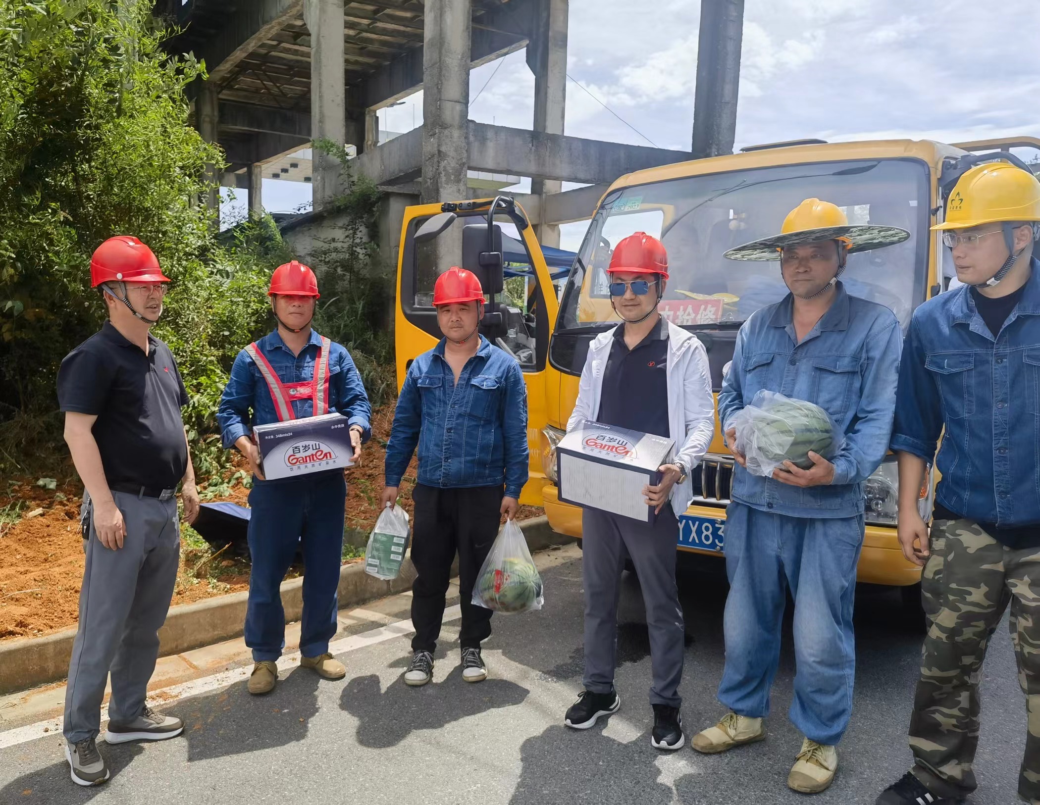 慰問組先后前往各工地為一線員工送去西瓜、礦泉水、藿香正氣水等防暑降溫物品,并與員工展開親切交談,詳細(xì)詢問了大家的工作和生活情況??偨?jīng)理艾關(guān)祥對員工們兢兢業(yè)業(yè)的工作態(tài)度以及戰(zhàn)高溫、抗酷暑,勇于奉獻(xiàn)、堅(jiān)守崗位的精神表示贊揚(yáng)和感謝,同時也悉心囑咐大家要注意防暑降溫、充分休息,勉勵大家以更安全、更健康的狀態(tài)投入到工作中。
